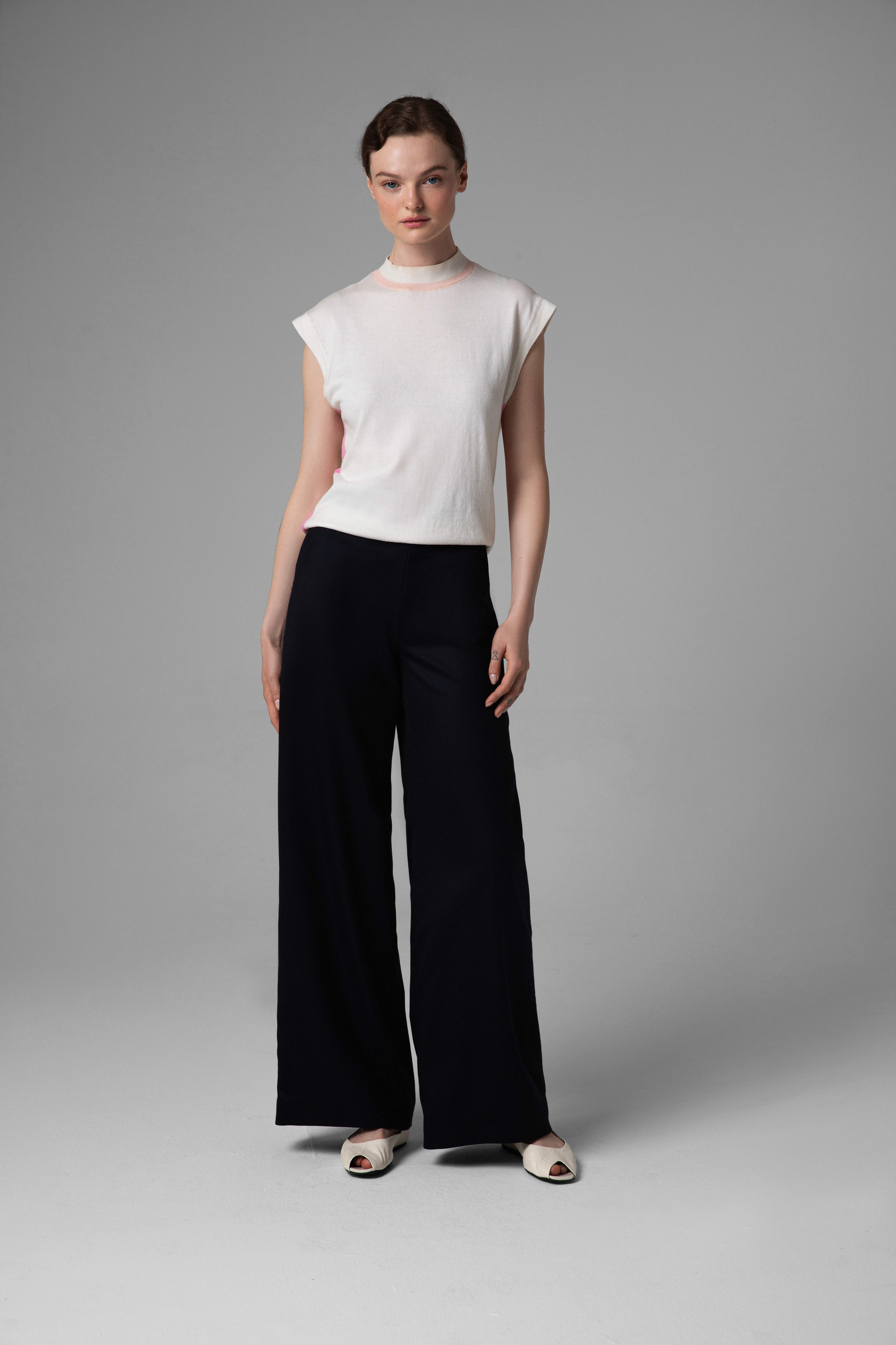 - Wide-leg silhouette