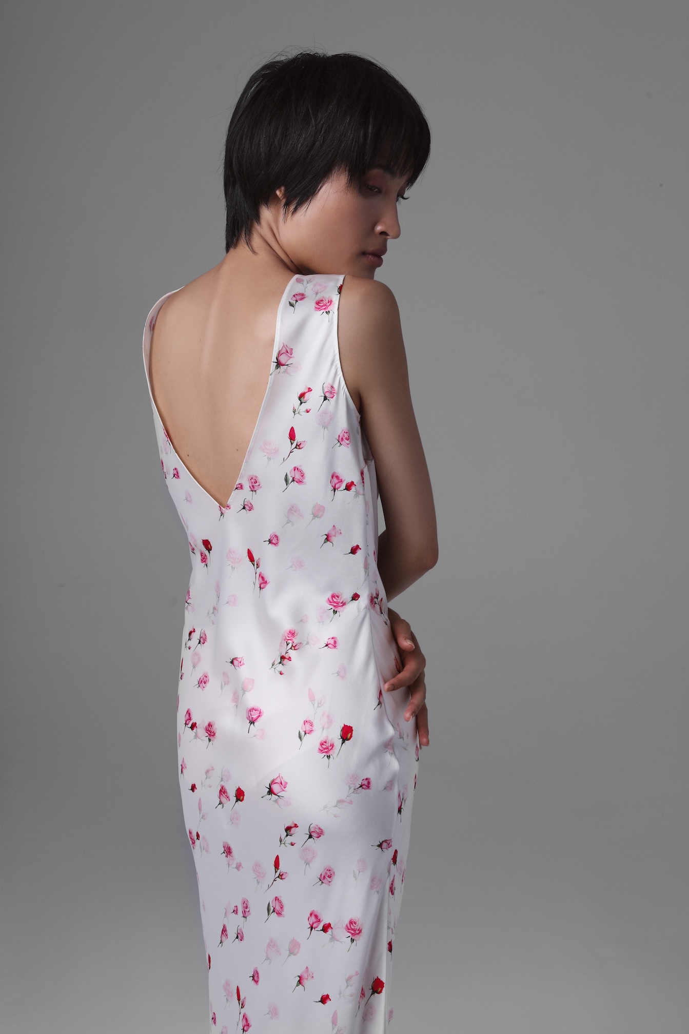 Jedwabna sukienka marki Monika Adamska to wybór dla kobiet, które chcą podkreślić swoją indywidualność i świadomie budować garderobę na lata. Szyta ze skosu sukienka sprawia, że tkanina delikatnie opływa sylwetkę, wysmuklając talię oraz biodra, nie krępuje ruchów, daje poczucie lekkości i swobody. Jedwabna satyna włoskiej produkcji jest wyjątkowo miękka i przyjemna w dotyku, co dodatkowo zwiększa komfort podczas noszenia. Subtelny, elegancki połysk tkaniny, delikatny różany wzór oraz głębokie dekolty z przodu i z tyłu dodają wyrafinowania. Detale, takie jak ręcznie wykonane podłożenia, charakterystyczne dla naszej marki, podkreślają najwyższą jakość rzemiosła, która zapewnia każdej kreacji unikalny charakter. Jedwabna midi sukienka sprawdzi się zarówno w dziennych, jak i wieczorowych okazjach. Wszystko zależy od dodatków i stylizacji.